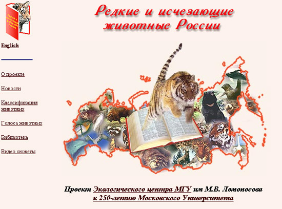 | Веб-проект, предлагающий подробные описания редких и исчезающих животных России, их изображения, карты ареалов, а также голоса ряда животных (более 30 записей, преимущественно птиц и хищных млекопитающих) и видеоматериалы на темы охраны исчезающих животных. | |||