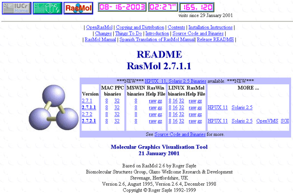 | http://www.bernstein-plus-sons.com/software/rasmol/INSTALL.html (программа – 527 Кб, помощь – 114 Кб) | |||