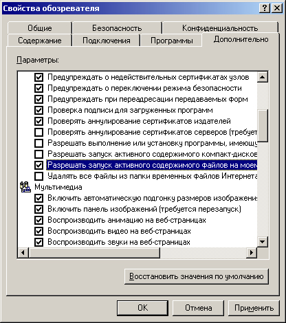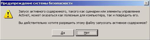 Внимание! После включения этой опции все HTML-документы смогут запускать активные компоненты с помощью Internet Explorer. В этом случае есть опасность заразить компьютер вирусами. Пожалуйста, будьте осторожны!