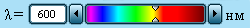 Этот специализированный элемент управления предназначен для выбора длины электромагнитной волны. Можно ввести значение длины волны с клавиатуры или, ухватившись мышью за скроллер шкалы, перетащить его на нужный цвет.