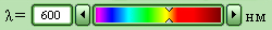 Этот специализированный элемент управления предназначен для выбора длины электромагнитной волны. Можно ввести значение длины волны с клавиатуры или, ухватившись мышью за скроллер шкалы, перетащить его на нужный цвет.