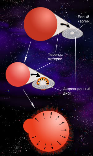Только четверть всех сверхновых связана с коллапсом ядер массивных звезд (вспышки II типа и типа Ib). Многие сверхновые образуются при коллапсе (или взрыве) белых карликов (вспышки Ia). Так как все белые карлики похожи друг на друга, сверхновые будут иметь приблизительно одинаковые звездные величины в любой галактике, что позволяет астрономам определять расстояния до них.